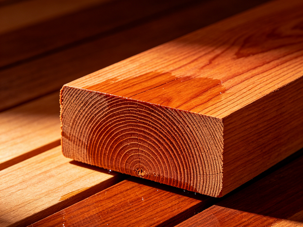 سدر قرمز غربی آمریکای شمالی سرشار از روغن ضد باکتری طبیعی است که دارای خواص ضد رطوبت، ضد خوردگی و مقاوم در برابر حشرات با عمر مفید 20 تا 30 سال است. دارای دانه های قهوه ای مایل به قرمز ظریف و رایحه غنی چوب طبیعی است. رسانایی حرارتی بسیار کم آن سطح را خنک نگه می دارد تا از سوختن آن جلوگیری کند، و آن را به ماده استاندارد استاندارد برای سوناهای سطح بالا تبدیل می کند.